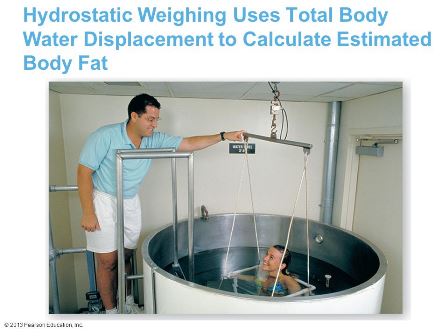 اندازه گیری هیدرواستاتیک ، همچنین به آن "وزن گیری زیر آب underwater weighing " گویند تجزیه و تحلیل ترکیب بدنی با استفاده از فشار آب ساکن hydrostatic " و "چگالی سنجی آبی hydro densitometry " و تکنیکی برای اندازه گیری جرم در واحد حجم the mass per unit volume از بدن یک فرد زنده گفته می شود. این یک کاربرد مستقیم از اصل ارشمیدس Archimedes' principle است که یک جسم حجم آب خود را جابجا می کند